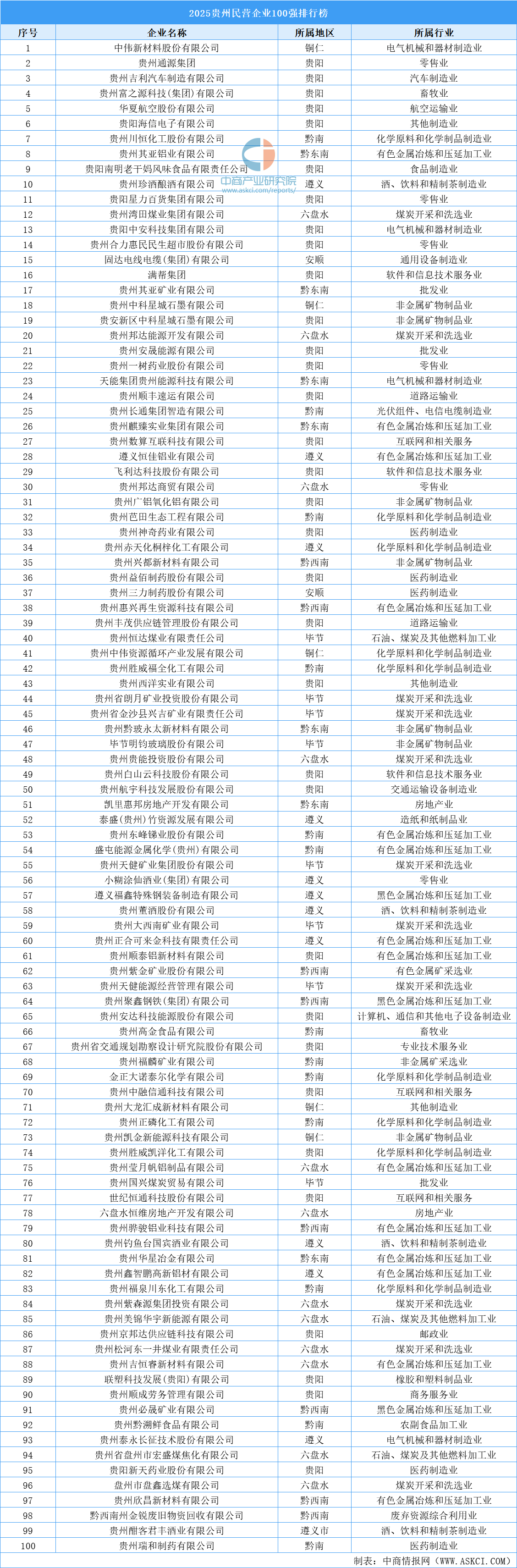 2025贵州民营企业制造业20强排行榜(附完整榜单)