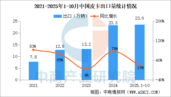 2025年10月全国皮卡出口2.68万辆,同比增长27%,环比增长22%,行业出口占比继续保持高位,1-10月皮卡出口23.6万辆,同比增长19%。2024年皮卡出口占比皮卡总销量的45%,2025年10月皮卡出口达到56%,2025年1-10月皮卡出口达到51%,中国自主皮卡出口提升较好。