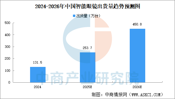 中国智能眼镜市场正处于高速增长初期,出货量基数尚小但增速迅猛。中商产业研究院发布的《2025-2030年中国智能眼镜行业市场前景预测及未来发展趋势研究简报》显示,2024年中国智能眼镜出货量131.5万台,中商产业研究院分析师预测,2025年中国智能眼镜出货量253.7万台,2026年出货量将超450万台。