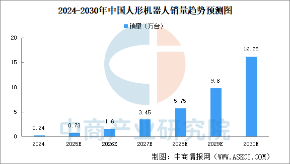 中国人形机器人市场目前仍处于发展初期,受限于技术成熟度、高成本及应用场景的探索,实际销量规模较小。中商产业研究院发布的《2025-2030年中国人形机器人行业分析及发展前景研究预测报告》显示,2024年中国人形机器人销量0.24万台。中商产业研究院分析师预测,随着技术进步和政策支持,呈现快速增长的潜力,预计2025年中国人形机器人销量将达0.73万台,2030年销量将增至16.25万台。