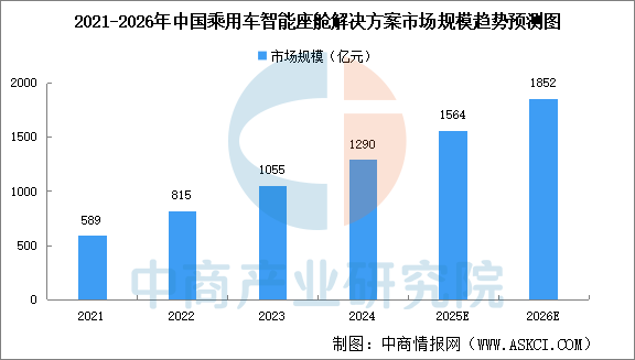 随着国内人工智能、5G通信、物联网等技术的融合应用,中国智能座舱市场均展现出巨大潜力。中商产业研究院发布的《2025-2030全球与中国智能座舱市场现状及未来发展趋势》显示,2024年中国乘用车智能座舱解决方案市场规模达到1290亿元,较上年增长22.27%。中商产业研究院分析师预测,2025年中国乘用车智能座舱解决方案市场规模将达到1564亿元,2026年市场规模将超1800亿元。