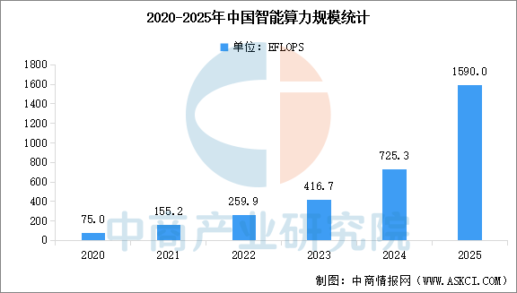 算力是支撑智能经济发展的核心基础设施,为海量数据处理与复杂算法训练提供关键计算支撑。我国算力基础设施的规模和水平已位居全球前列,国家正大力实施超大规模智算集群、算电协同等新基建工程,并加强全国一体化算力调度,以缓解算力供需矛盾。中商产业研究院发布的《2025-2030年中国智算中心发展洞察与市场前景预测研究报告》显示,截至2025年,中国智能算力规模已达1590EFLOPS(每秒百亿亿次浮点运算),同比增长119.2%。