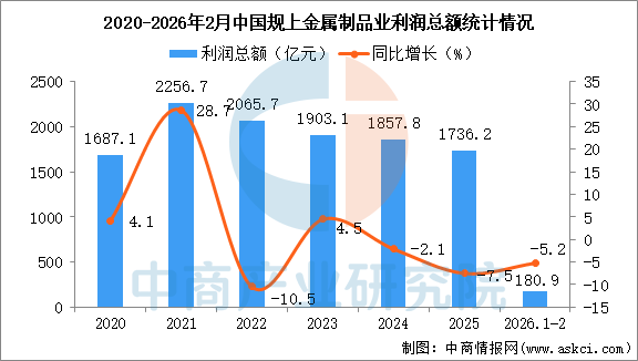2026年1-2月中国有色金属矿采选业经营情况:利润同比增长99.9%