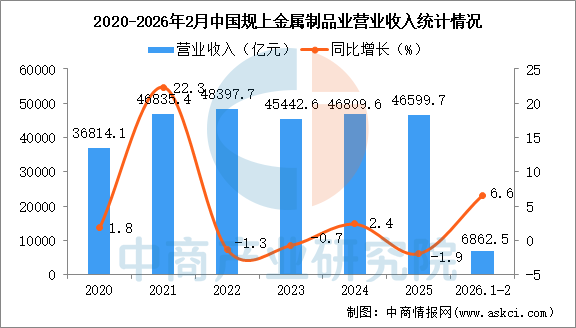 2026年1-2月全国规上工业企业营业收入同比增长5.3%(图)