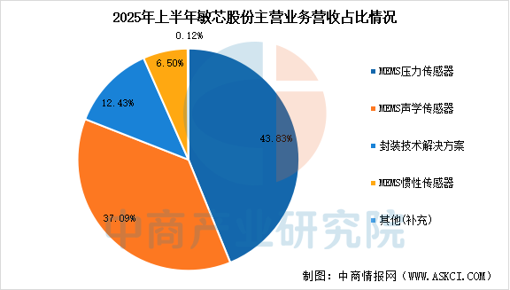 2025年前三季度,敏芯股份主营收入4.64亿元,同比上升37.73%,归母净利润3654.57万元,同比上升175.99%。分产品来看,2025年上半年,公司MEMS压力传感器收入占比43.83%,MEMS声学传感器收入占比37.09%,MEMS惯性传感器收入占比6.50%。