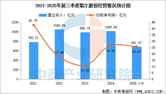 2025年前三季度,歌尔股份实现营业收入681.07亿元,同比下滑2.21%,归母净利润25.87亿元,同比增长10.33%。分产品来看,2025年上半年,公司精密零组件收入76.04亿元,占比20.25%。