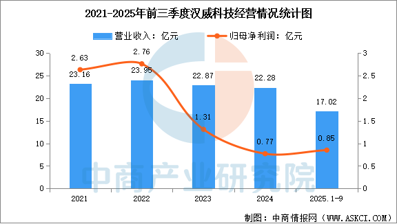2025年前三季度,汉威科技营业收入为17.02亿元,同比增长8.44%,归母净利润为8484.30万元,同比增长6.33%。分产品来看,2025年上半年,公司传感器收入1.88亿元,占比15.95%.