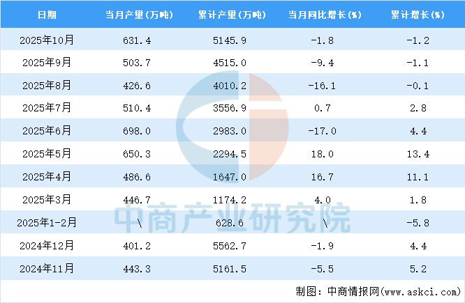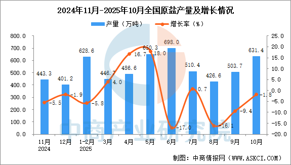 2025年10月全国原盐产量数据统计分析 中商产业研究院 2025-11-19 15:58