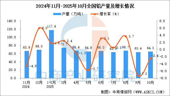 2025年10月全国铅产量数据统计分析 中商产业研究院 2025-12-05 11:53