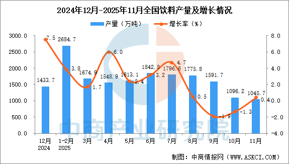 2025年11月全国饮料产量数据统计分析 中商产业研究院 2025-12-24 09:24