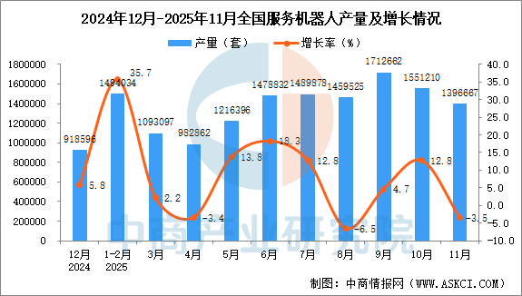 2025年11月全国服务机器人产量数据统计分析 中商产业研究院 2026-01-21 17:42