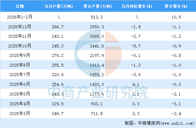 2026年1-2月全国饲料产量数据统计分析