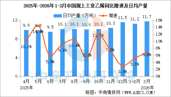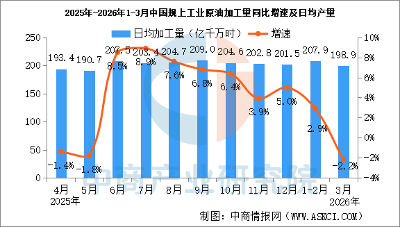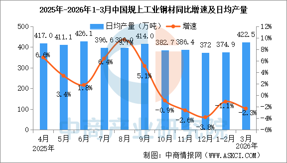分产品看,3月份,规模以上工业626种产品中有329种产品产量同比增长。其中,钢材13098万吨,同比下降2.3%;水泥12310万吨,下降21.0%;十种有色金属707万吨,增长2.2%;乙烯364万吨,增长6.8%;汽车306.7万辆,下降0.1%,其中新能源汽车133.6万辆,增长1.2%;发电量8025亿千瓦时,增长1.4%;原油加工量6167万吨,下降2.2%。