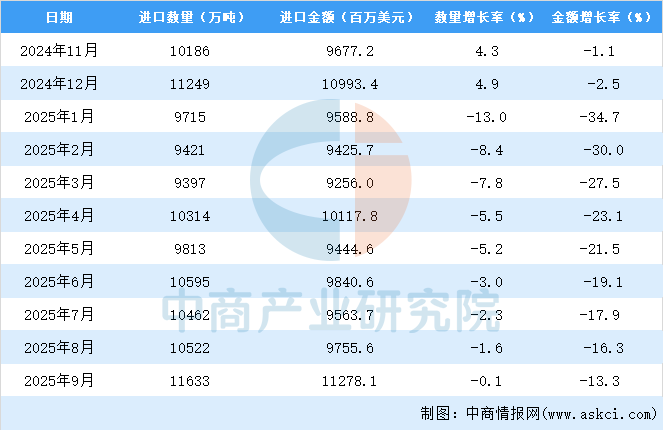 2025年1-9月中国豆油进口数据统计分析:进口量同比增长5.4%