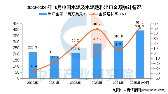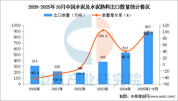 2025年1-10月中国水泥及水泥熟料出口数据统计分析:出口量897万吨 中商产业研究院 2025-12-03 09:47
