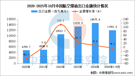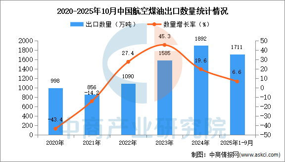 2025年1-10月中国成品油出口数据统计分析:出口量同比下降3.3%