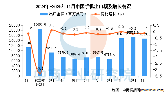 2025年11月中国手机出口量及金额增长情况
