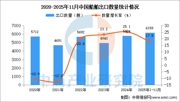 2025年1-11月中国船舶出口数据统计分析:出口量同比增长17.8% 中商产业研究院 2026-01-15 08:41