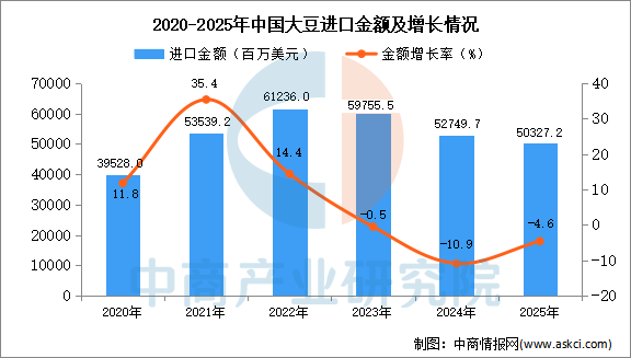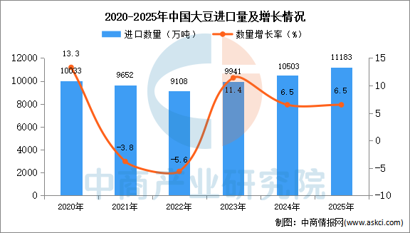 2025年1-12月中国大豆进口数据统计分析:进口量同比增长6.5% 中商产业研究院 2026-01-21 08:41