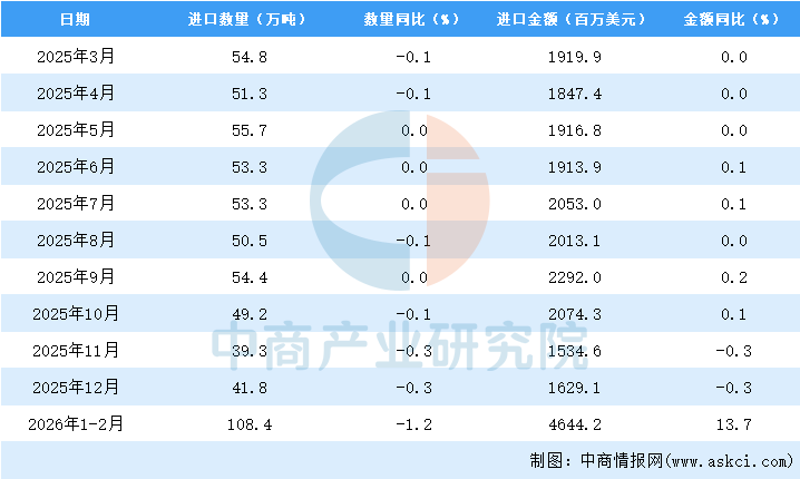 2026年1-2月中国粮食进口数据统计分析:进口量1786.5万吨