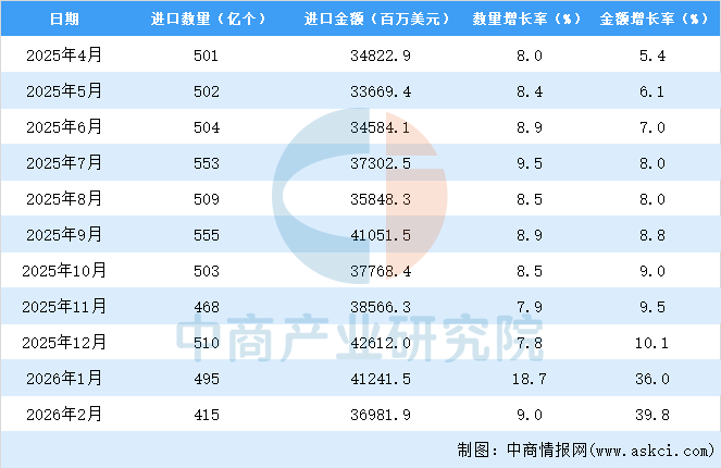2026年1-2月中国存储部件进口数据统计分析:进口量同比增长32%