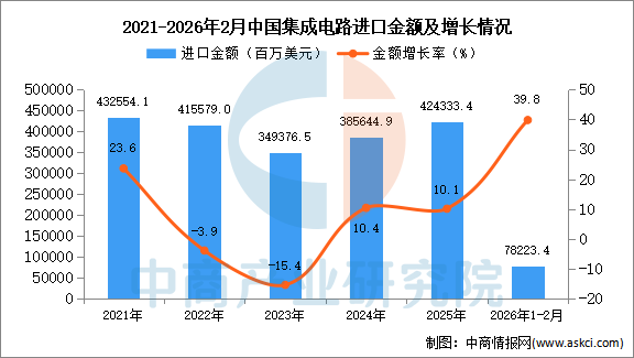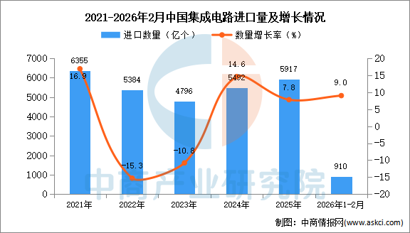 2026年1-2月中国二极管及类似半导体器件进口数据统计分析:进口量同比增长5.2%