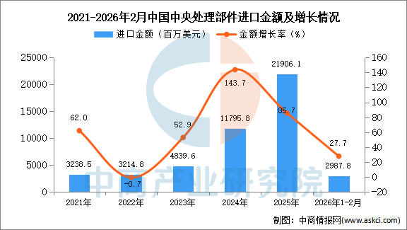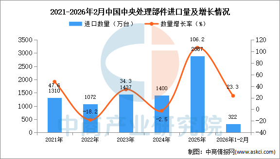 2026年1-2月中国集成电路进口数据统计分析:进口量同比增长9%