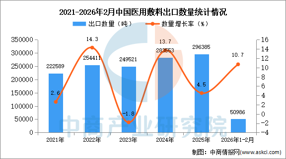 2026年1-2月中国医用敷料出口数据统计分析:出口量同比增长10.7% 中商产业研究院 2026-04-07 09:09