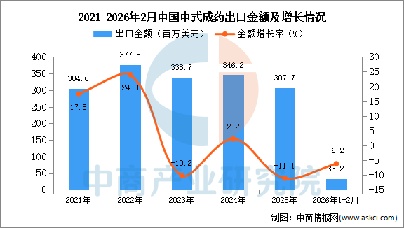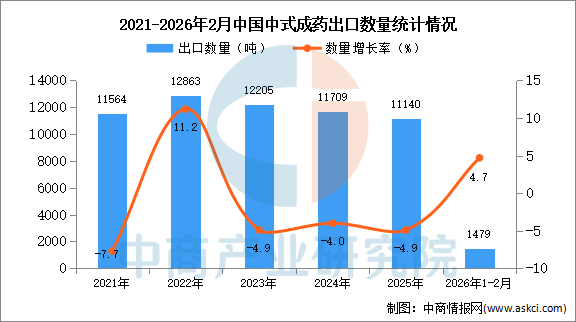 2026年1-2月中国中式成药出口数据统计分析:出口量同比增长4.7% 中商产业研究院 2026-04-07 09:11