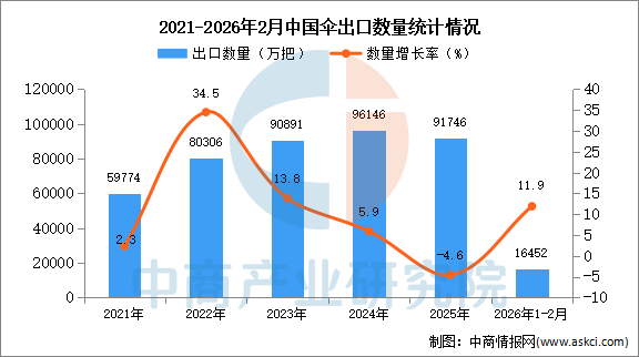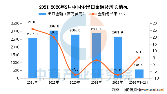 2026年1-2月中国箱包及类似容器出口数据统计分析:出口量66万吨