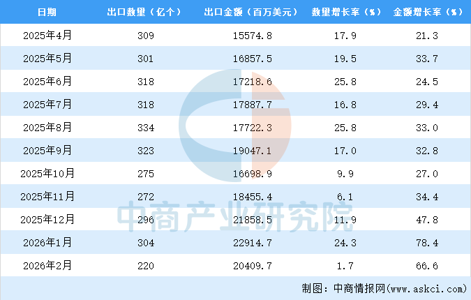 2026年1-2月中国集成电路出口数据统计分析:出口量同比增长13.7% 中商产业研究院 2026-04-14 08:54