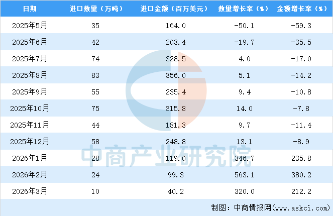 2026年1-3月中国食用植物油进口数据统计分析:进口量增长25.4%