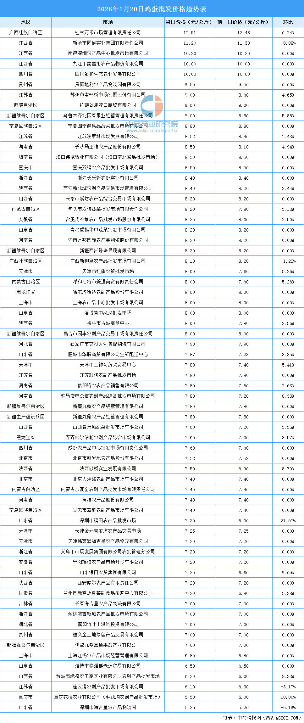 2026年1月21日全国各地最新鸡蛋价格行情走势分析 中商产业研究院 2026-01-21 09:13